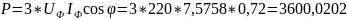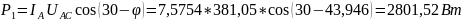 Мощность, измеряемая первым ваттметром Р1 и Р2 = 2801,5185+792,2713=3593,7898 Вт
