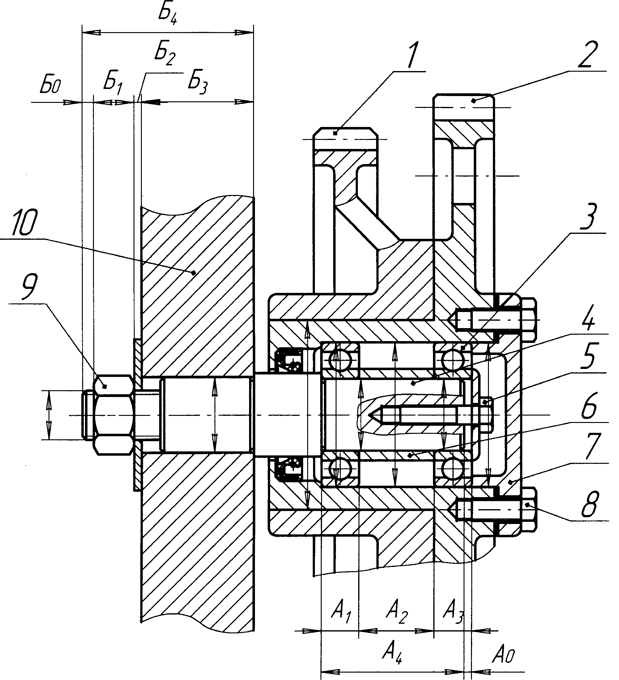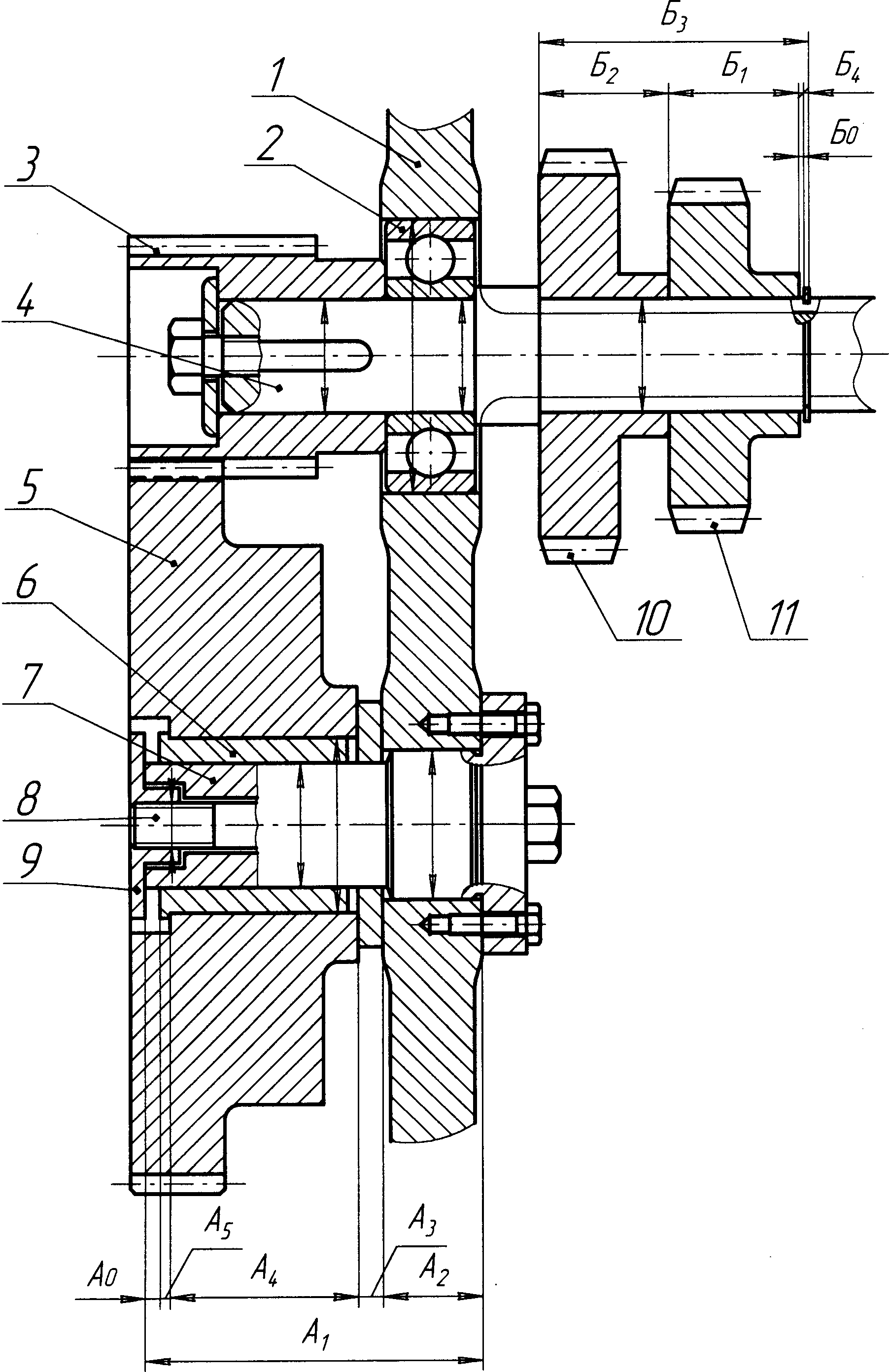 Вращение от блока шестерен 5 передается валу 6 и далее через полумуфту 7 к исполнительному органу. Соединение 5 и 7 выполнено неподвижно.