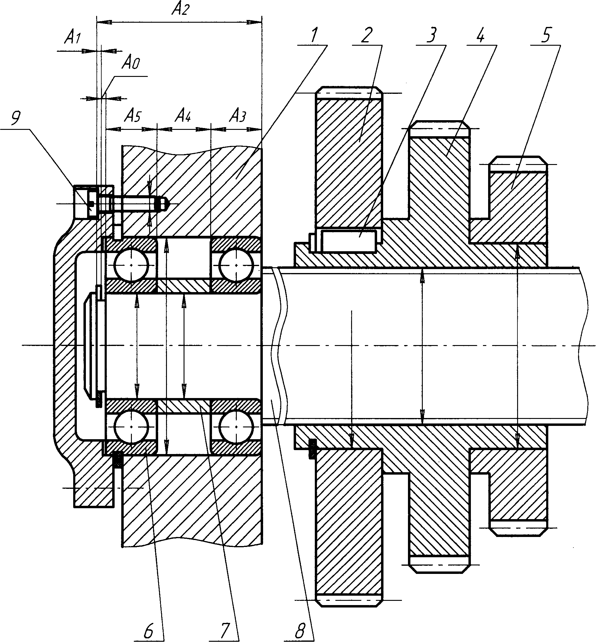 Крутящий момент с вала 5 передается шестерне 7 и далее через шпонку валу 1. Соединение 1 и 2 выполнено подвижно.