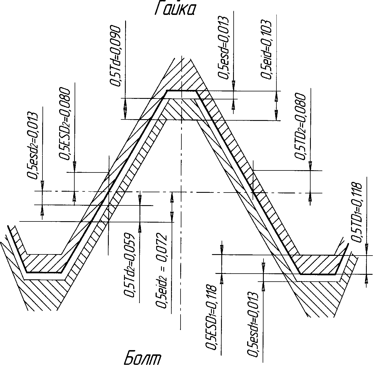 Рис. 7. Схема полей допусков резьбового соединения