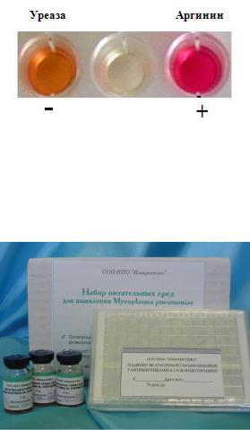 Ускоренный бактериологический метод для выявления генитальных микоплазм и уреаплазм основан на способности микоплазм расщеплять аргинин, а уреаплазм - мочевину с образованием щелочи. О росте культуры судят по изменению цвета индикатора, добавленного в питательную среду (рисунок 11).
