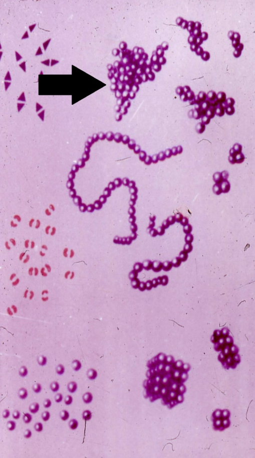 12. Стрелкой обозначены: стафилококки
