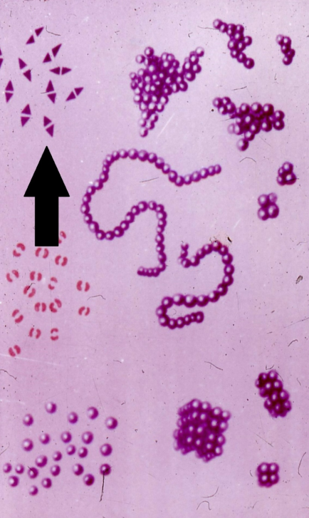 16. Стрелкой обозначены: диплококки