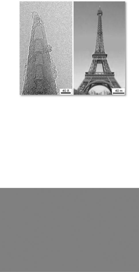 Сравнение размеров многостенных нанотрубок и Эйфелевой башни