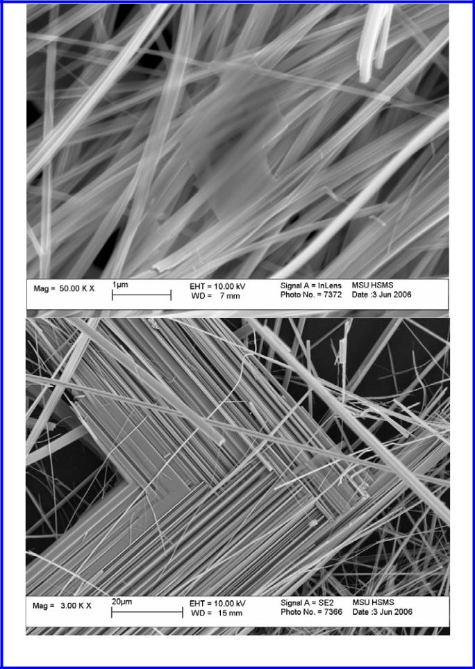 расплав KCl-BaCl2). Присутствие изогнутых вискеров говорит об их необычайной гибкости, недоступной объемным неорганическим кристаллам.
