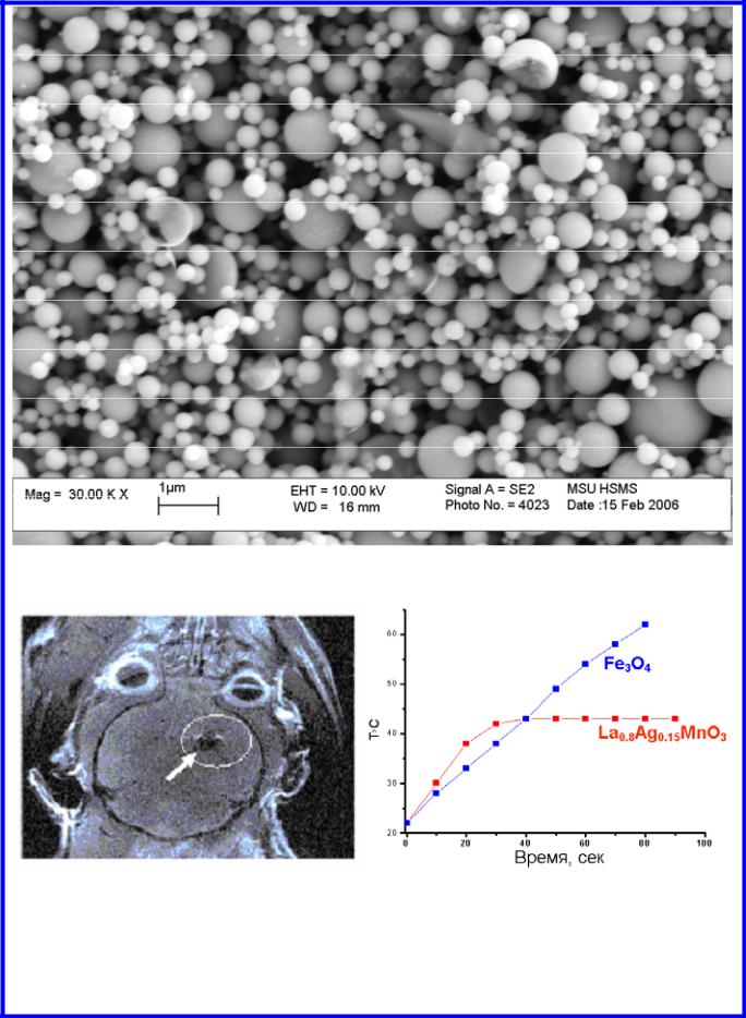 Н=0,8Тл, частота-100кГц) для частиц фазы La0,8Ag0,15MnO3; для сравнения показано поведение наночастиц оксида железа в аналогичных условиях (справа).