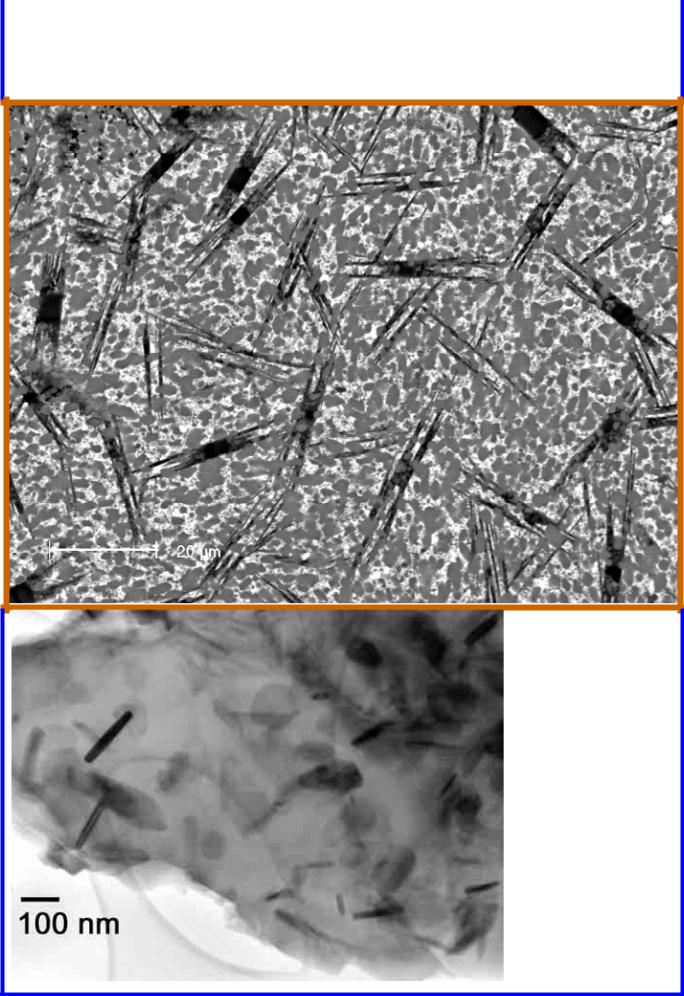Магнитный нанокомпозит на основе гексаферрита стронция, перспективный для создания носителей информации с высокой плотностью записи. Однодоменные частицы гексаферрита стронция находятся в матрице силиката стронция.