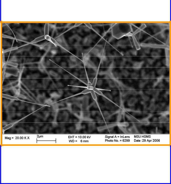 «Нанотетраподы». Наноструктурированные кристаллиты оксида цинка, полученные при росте из газовой фазы. (сканирующая электронная микроскопия).