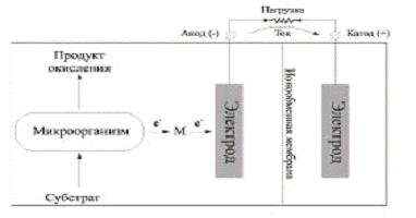 Рис. 1. Схема микробного топливного элемента