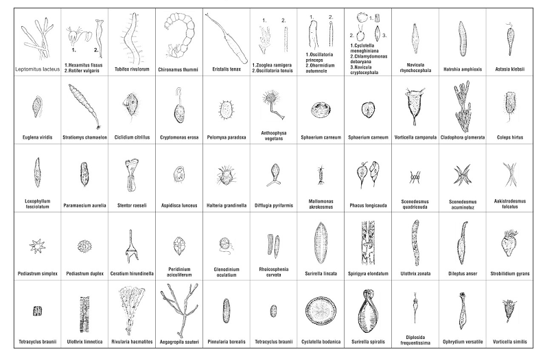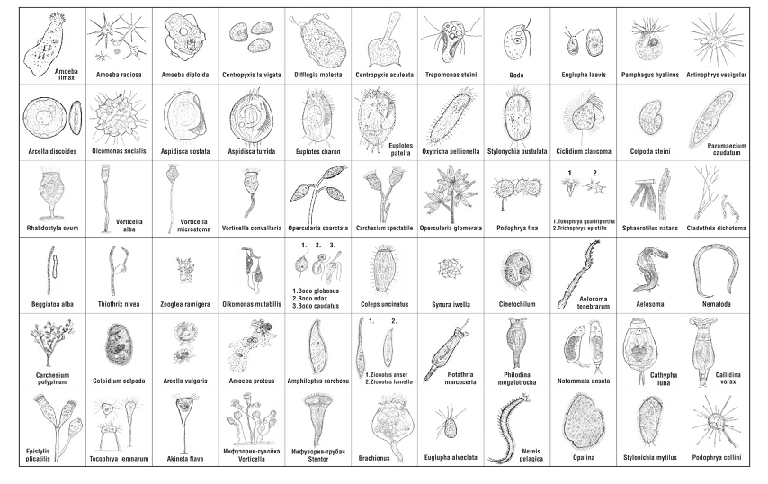 комплекс микроорганизмов различных классов, простейших микроскопических червей,