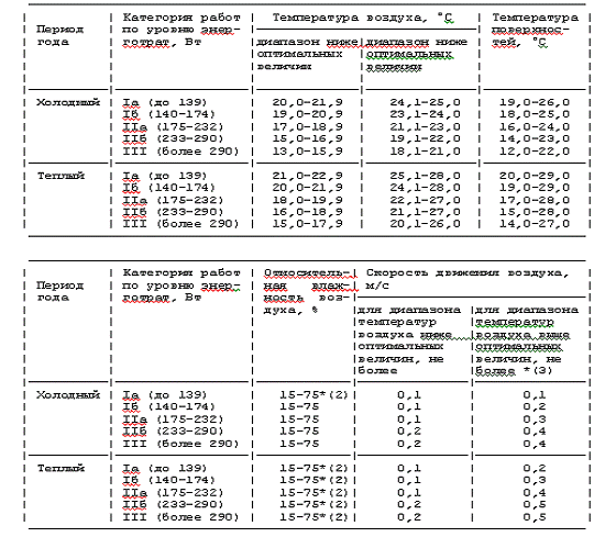 Таблица 3. Допустимые величины показателей микроклимата на рабочих местах производственных помещений