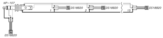 Рисунок 3. Подключение термодатчиков DS18B20 к блоку управления
