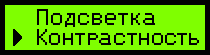 «Параметры», «Подсветка» и «Контрастность». Навигация осуществляется клавишами