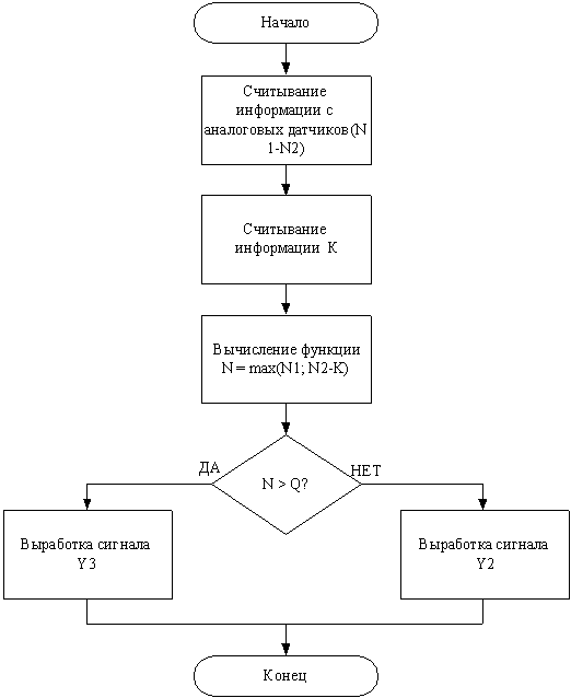 выработка двоичного управляющего воздействие Y2. Если же функция N1 > K, то