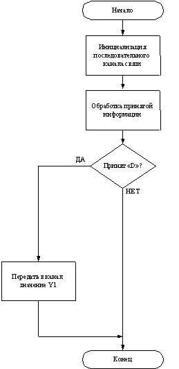анализ полученной информации и если был принят символ «D», то передается в