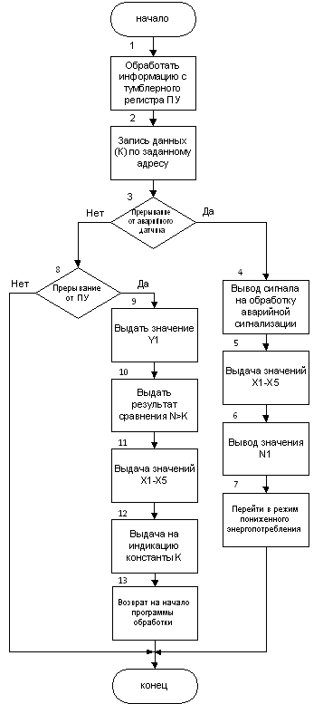 в программе адресу. В блоке 3 проверяется наличие прерывания от аварийного