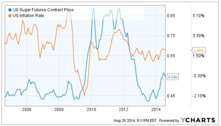 Сахар исторически показывает значительную корреляцию с темпом инфляции, а