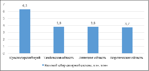 Краснодарский край (6,3 млн. тонн), Тамбовская область (3,8 млн. тонн),