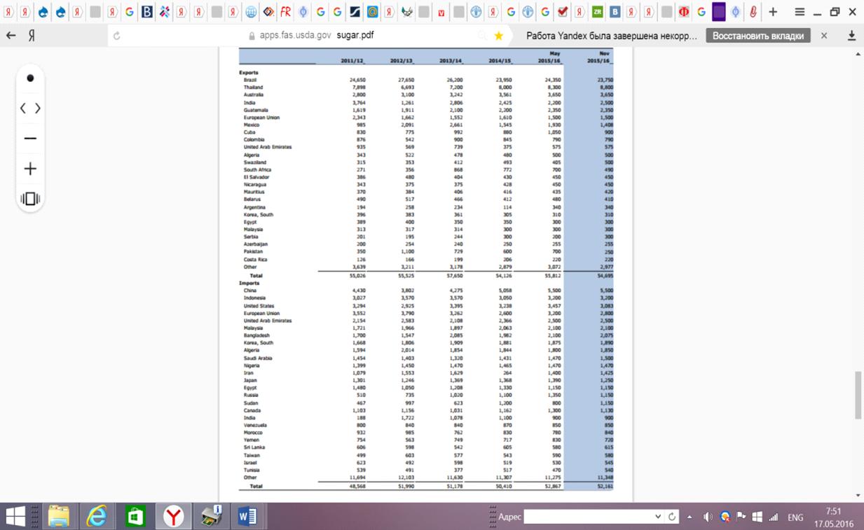 Источник: Sugar: World Markets and Trade: The overview of