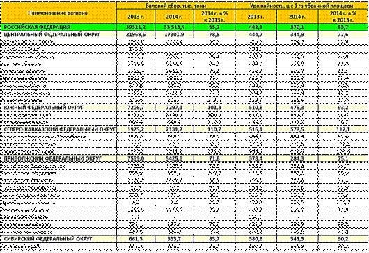 Валовой сбор сахарной свеклы в РФ в 2013-2014 годах