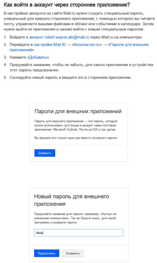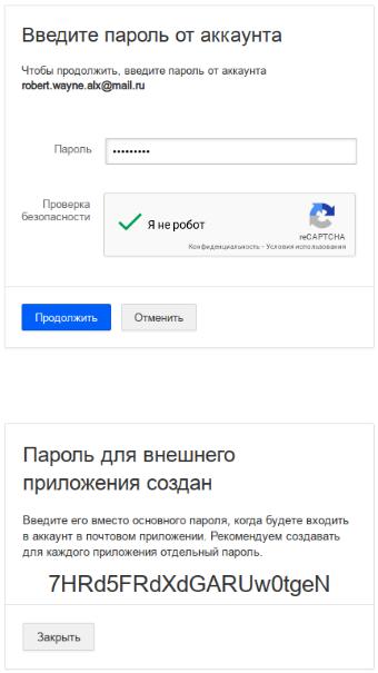 Рисунок 5. Следуем инструкции, добавляем пароль для внешнего приложения