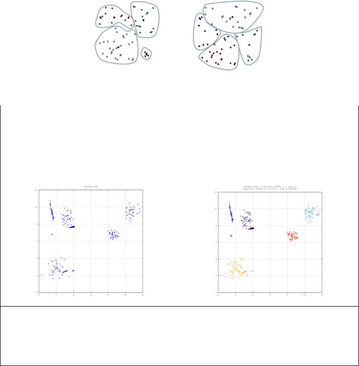 Примером может служит разбиение множества точек на плоскости на подмножества, по признаку близости их координат.