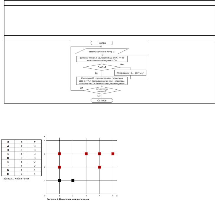2. Помечаем объекты выборки, находящиеся на расстоянии менее, чем R от текущего. 3. Вычисляем их центр тяжести, помечаем этот центр как новый текущий объект.