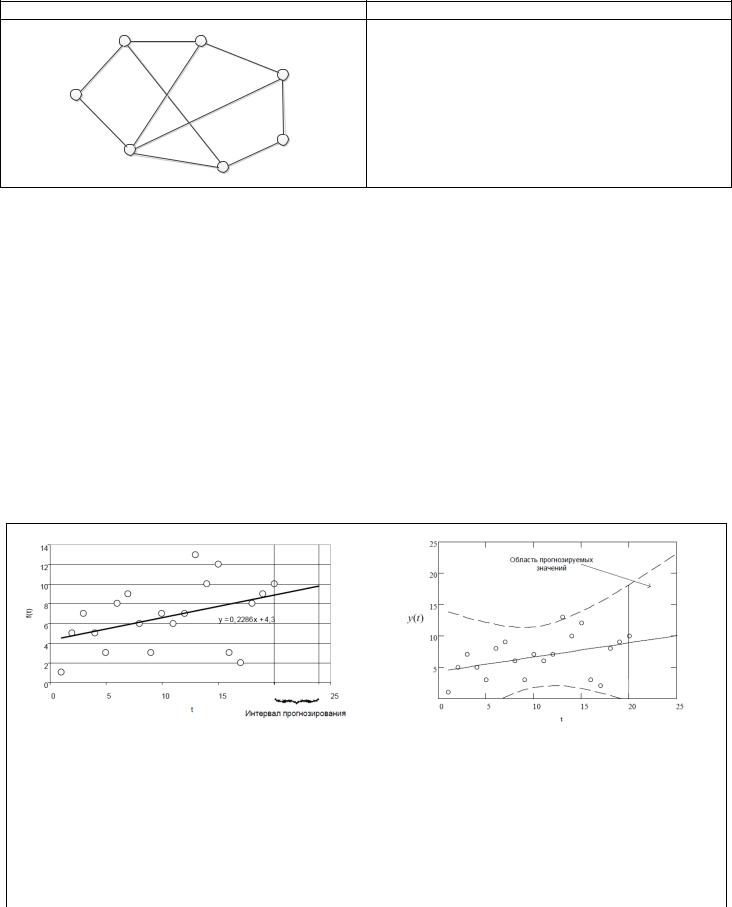 В этом случае предполагается, что имеет место линейная тенденция изменения прогнозируемой величины, а также сохраняется случайный характер ее изменения, поэтому результатом прогноза является доверительный интервал. Ширина доверительного интервала расширяется с увеличением интервала прогнозирования, а ее минимальное значение приходится на середину интервала исходных данных.