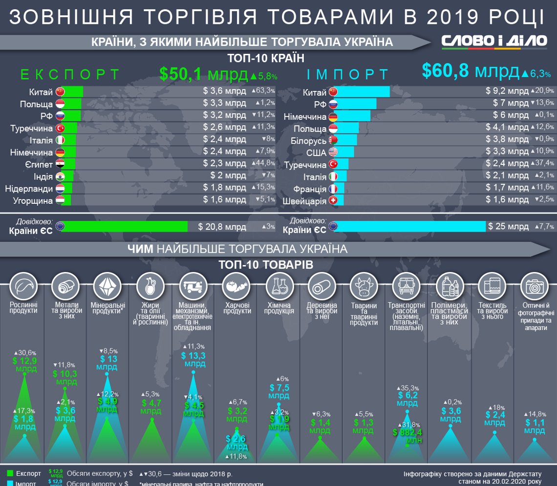 Таблиця 1. «Зовнішня торгівля товарами в Україні в 2019 р.»