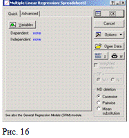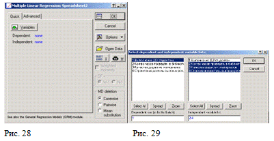 окно множественного регрессионного анализа (Рис. 28). Нажать кнопку