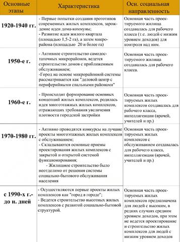 Таблица 1- Основные этапы формирования многоэтажных жилых комплексов
