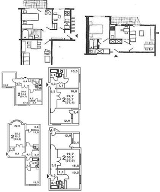 Не теряет своей актуальности требование "гибкой" планировки как самого жилого дома, так и квартир. Гибкость в решении дома обозначает достаточный набор поворотных, торцевых секций для обеспечения градостроительной мобильности. Гибкость в решении квартиры предполагает возможность ее быстрого приспособления к меняющимся во времени требованиям семьи. Для этого применяются гибко трансформирующиеся перегородки при широком шаге несущих конструкций в 7,2 м.