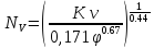 Підставивши Кv і φ у рівняння Кv= 0,171Nv0,44φ0,67, одержуємо