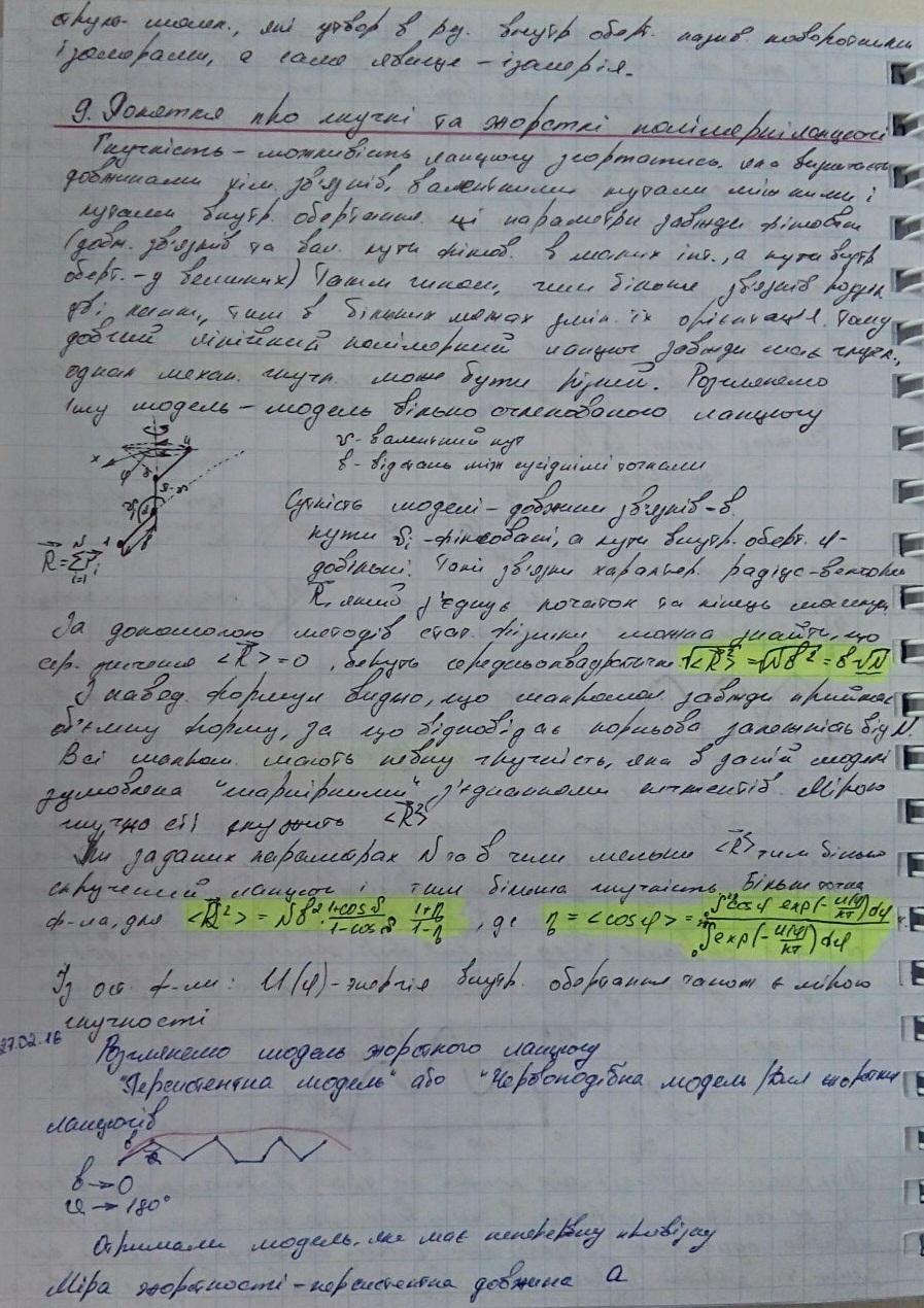Гнучкість – можливість ланцюгу згортатися довжинами хім.. звязів, валентними кутами між ними та кутами внутр.. обертання