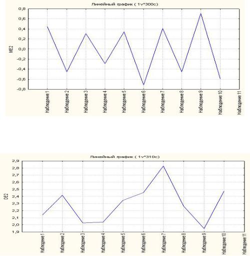 •является стационарным в отношении математического ожидания, так как нулевая гипотеза об абсолютной случайности ряда ME2 не отвергается по критерию серий и критерию Up&Down,