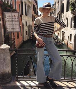 Вроде ничего замысловатого: джинсы и свитер, не делающие акцент на силуэте фигуры, но выглядит образ очень женственно. Это достигается с помощью классических женских аксессуаров в виде шляпки и маленькой сумочки на цепочке. Это отличный пример простого образа на каждый день, который подчеркивает женственность.
