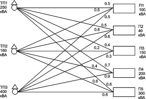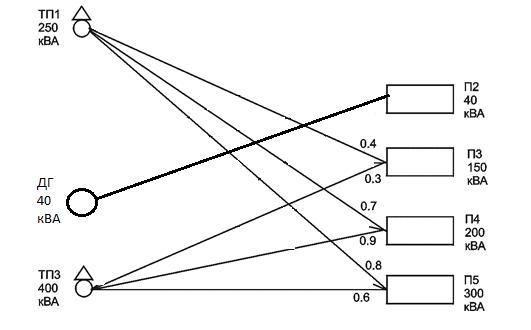 Потрібно вибрати оптимальну схему електропостачання споживачів, що відповідає мінімальним капіталовкладенням.