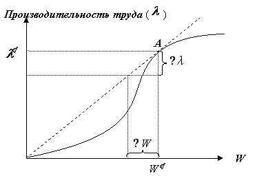 (см. рис.), когда касательная к кривой производительности труда