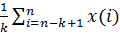 следующим образом [5]. Вводится скользящее среднее приростов x(n) на шаге n по выборке длины k