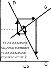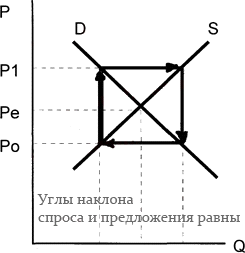то любое первоначальное отклонение ведет к колебаниям цен и объемов одинаковой
