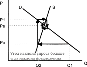 то любое отклонение от равновесия будет вести к увеличению колебаний цен и