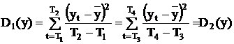 - дисперсия, рассчитанная на j-й части интервала (1,Т).