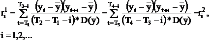коэффициентов автокорреляции i-го порядка процесса уt на 1-ом и на