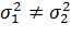 предполагается, что значения дисперсий на этих участках не равны между собой,
