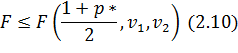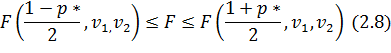 табличными (левосторонним и правосторонним) значениями критерия Фишера,