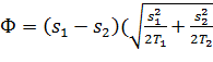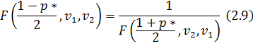 где р* - заданный уровень доверительной вероятности (р*=0,95; 0,97...); n=Т1+Т2-2 - число степеней свободы;