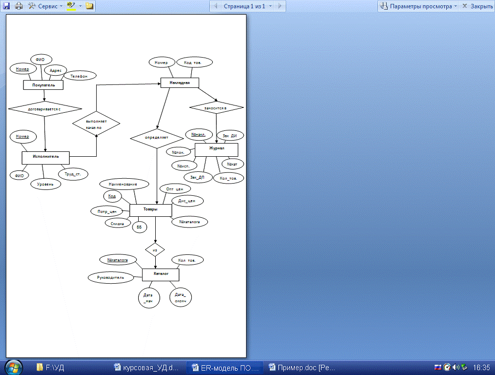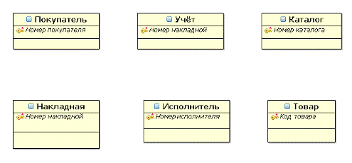 .2.1 Сущности № 1 Сущность «Покупатель».: Покупатель: Пок Persistent: v: Pok: Определение: Человек, который делает заявку на приобретение товара. Примеры возможных запросов: Список покупателей. Примеры экземпляров сущности: Петров И.И. Идентификатор сущности: «Ном_пок». № 2 Сущность «Учёт». Name: Учёт: Учёт: v Abbreviation: Uch: Определение: Сведения о накладных, содержащие информацию о том, какой исполнитель какого покупателя обслуживал, о количестве товаров, о номере действующего каталога, а также даты подачи заявок покупателями и даты исполнения заявок исполнителями. Примеры возможных запросов: Дата подачи заявки. Примеры экземпляров сущности: № 777777. Идентификатор сущности: «Ном_накл». № 3 Сущность «Накладная».: Накладная: Накл Persistent: v: Nakl: 1. Определение: Сведения о товаре в накладной. 2. Примеры возможных запросов: 1.Код товара. 3. Примеры экземпляров сущности: 54637. . Идентификатор сущности: «Ном_накл». № 4 Сущность «Исполнитель».: Исполнитель : Исп Persistent: v: Isp: Определение: Сведения об исполнителях. Примеры возможных запросов: Номер исполнителя. Примеры экземпляров сущности: 10300. Идентификатор сущности: «Ном_исп».