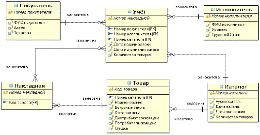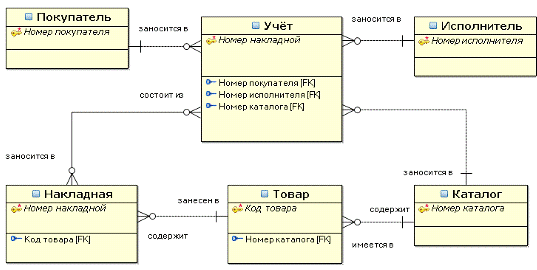 .2.4Связи . Связь «Учёт - Покупатель»Phrase со стороны родительской сущности - заносится вPhrase со стороны дочерней сущности - содержит : Покупатель в учёте. Тип связи: неидентифицирующая. Кардинальность связи (Cardinality - 0, 1, ∞; 1, ∞ (P); 0, 1 (Z); точно N (N); . Связь «Учёт - Исполнитель»Phrase со стороны родительской сущности - заносится вPhrase со стороны дочерней сущности - содержит: Исполнитель в учёте. Тип связи: неидентифицирующая, Кардинальность связи (Cardinality - 0, 1, ∞; 1, ∞ (P); 0, 1 (Z); точно N (N); . Связь «Учёт - Накладная»Phrase со стороны родительской сущности - заносится вPhrase со стороны дочерней сущности - состоит из: Накладная из учёта. Тип связи: неопределенная.