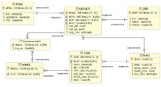6. SQL-скрипт схемы базы данных база данные заказ CREATE SCHEMA Admin;TABLE POK ( #POK DECIMAL(10 , 0) NOT NULL,CHAR(30),CHAR(50),CHAR(16) )CAPTURE NONE ; TABLE UCHET ( #NAKL DECIMAL(10 , 0) NOT NULL, #POK DECIMAL(10 , 0) NOT NULL, #ISP DECIMAL(10 , 0) NOT NULL, #KAT CHAR(10) NOT NULL,_DP DATE,_DI DATE,_TOV INTEGER )CAPTURE NONE ;TABLE NAKL ( )CAPTURE NONE ;TABLE ISP ( #ISP DECIMAL(10 , 0) NOT NULL,CHAR(30),CHAR(15),CHAR(15) )CAPTURE NONE ;TABLE KAT ( #KAT CHAR(10) NOT NULL,CHAR(15),_NACH DATE,_KON DATE,_TOV INTEGER )CAPTURE NONE ;TABLE TOV (DECIMAL(10 , 0) NOT NULL, #KAT CHAR(10) NOT NULL,CHAR(30),INTEGER,_CEN FLOAT(7),_CEN FLOAT(7),_CEN FLOAT(7),CHAR(5) )CAPTURE NONE ;TABLE Spisok nakladnih ( #NAKL DECIMAL(10 , 0) NOT NULL,_tov CHAR(5) )CAPTURE NONE ;TABLE POK ADD CONSTRAINT POK_PK PRIMARY KEY (#POK);TABLE UCHET ADD CONSTRAINT UCHET_PK PRIMARY KEY (#NAKL);TABLE NAKL ADD CONSTRAINT NAKL_PK PRIMARY KEY (#NAKL);TABLE ISP ADD CONSTRAINT ISP_PK PRIMARY KEY (#ISP);TABLE KAT ADD CONSTRAINT KAT_PK PRIMARY KEY (#KAT);TABLE TOV ADD CONSTRAINT TOV_PK PRIMARY KEY (KOD);TABLE Spisok nakladnih ADD CONSTRAINT NAKL_X_UCHET_PK PRIMARY KEY (#NAKL);TABLE UCHET ADD CONSTRAINT UCHET_POK_FK FOREIGN KEY (#POK)POK (#POK);TABLE UCHET ADD CONSTRAINT UCHET_ISP_FK FOREIGN KEY (#ISP)ISP (#ISP);TABLE UCHET ADD CONSTRAINT UCHET_KAT_FK FOREIGN KEY (#KAT)KAT (#KAT);TABLE UCHET ADD CONSTRAINT UCHET_NAKL_FK FOREIGN KEY (#NAKL)NAKL (#NAKL)ENFORCED;TABLE NAKL ADD CONSTRAINT NAKL_TOV_FK FOREIGN KEY (KOD)TOV (KOD);TABLE TOV ADD CONSTRAINT TOV_KAT_FK FOREIGN KEY (#KAT)KAT (#KAT);TABLE Spisok nakladnih ADD CONSTRAINT NAKL_X_UCHET_NAKL_FK FOREIGN KEY (#NAKL)NAKL (#NAKL);TABLE Spisok nakladnih ADD CONSTRAINT NAKL_X_UCHET_UCHET_FK FOREIGN KEY (#NAKL) REFERENCES UCHET (#NAKL);