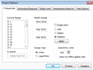 В папке Circuit Schematics хранится файл созданной схемы. В папке Graphs - находится графики и измеренные параметры. Графики могут быть представлены в различных форматах: прямоугольные, полярные, в виде диаграммы Смита и другие. Во вкладке меню Project Options есть возможность изменить диапазон частот, на которых будет происходить измерение, рисунок 2.2.2.